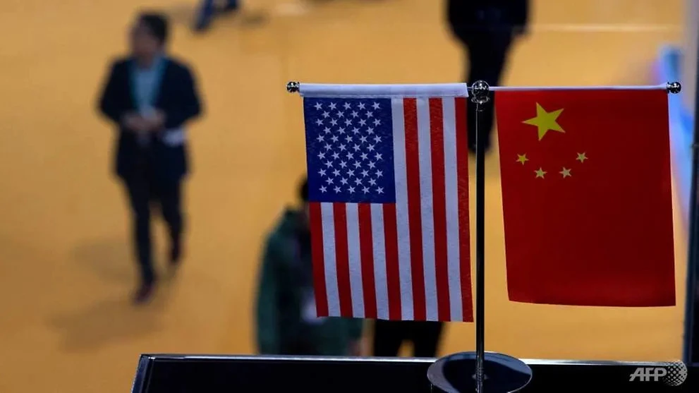 Cờ Mỹ và cờ Trung Quốc xếp cạnh nhau. Ảnh: AFP