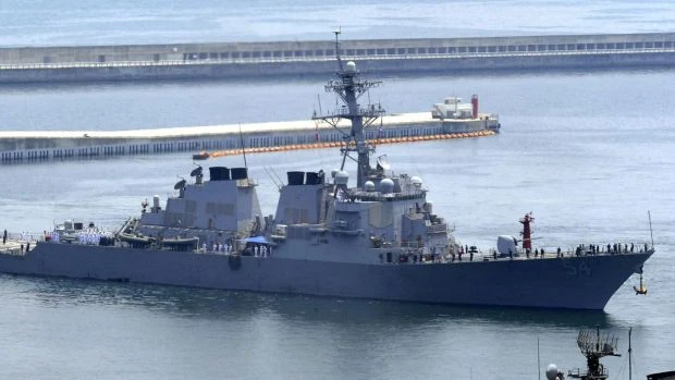 Tàu USS Curtis Wilbur đi gần đảo Tri Tôn do Trung Quốc chiếm đóng trái phép ở biển Đông ngày 30-1. (Ảnh: AP)