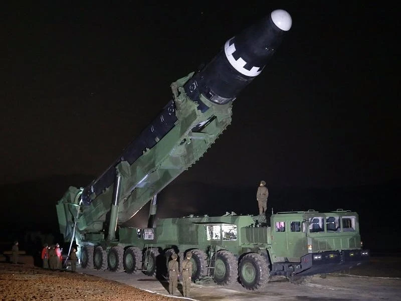 Tên lửa đạn đạo xuyên lục địa Hwasong-15 được Triều Tiên phóng rạng sáng 29-11. Ảnh: RODONG SINMUN