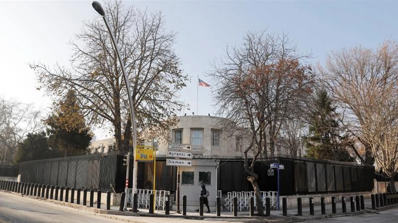 Bên ngoài Đại sứ quán Mỹ tại Ankara. Ảnh: REUTERS