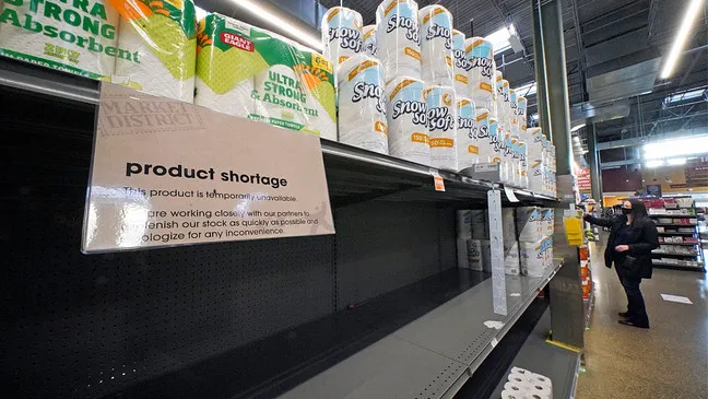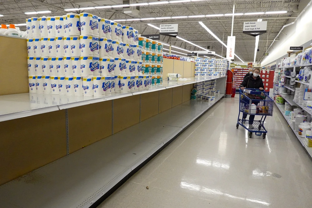 Theo công ty nghiên cứu thị trường Mỹ IRI, 21% kệ hàng khăn giấy và giấy vệ sinh tại các siêu thị và cửa hàng tiện lợi Mỹ hiện đều đã trống trơn.