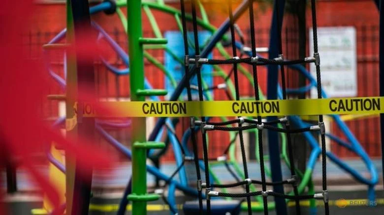 Băng cảnh báo được dán xung quanh sân chơi của một trường học ở Manhattan sau khi đại dịch COVID-19 bùng phát trở lại tại TP New York vào ngày 27-9. Ảnh: REUTERS