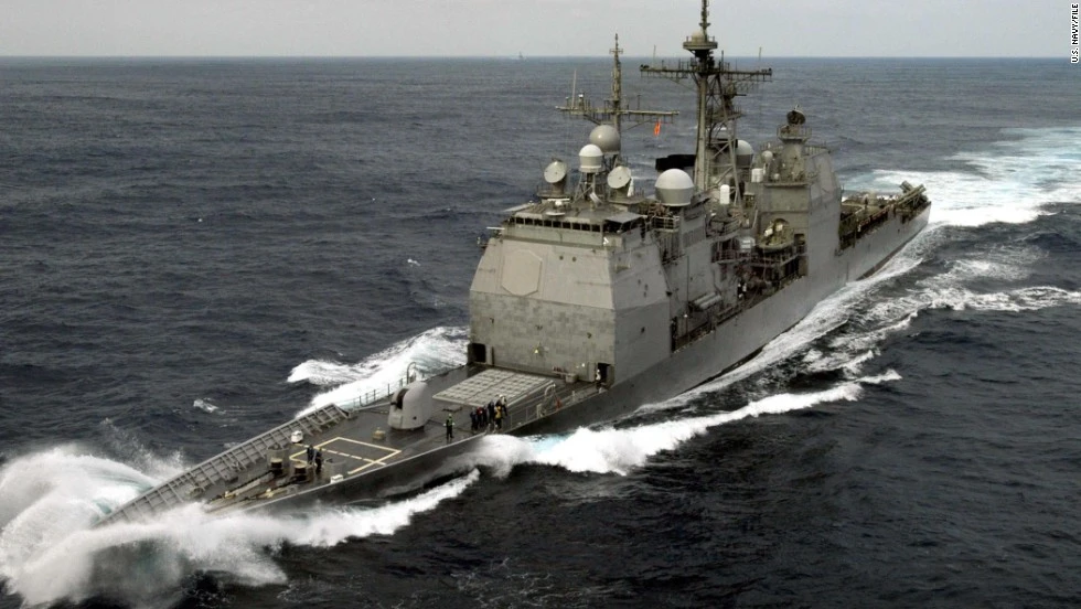 Tuần dương hạm mang tên lửa dẫn đường USS Chancellorsville của Mỹ. Ảnh: CNN