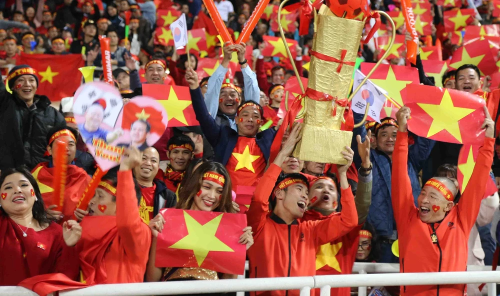 CĐV Việt Nam trên sân Mỹ Đình. ẢNH: ANH DŨNG