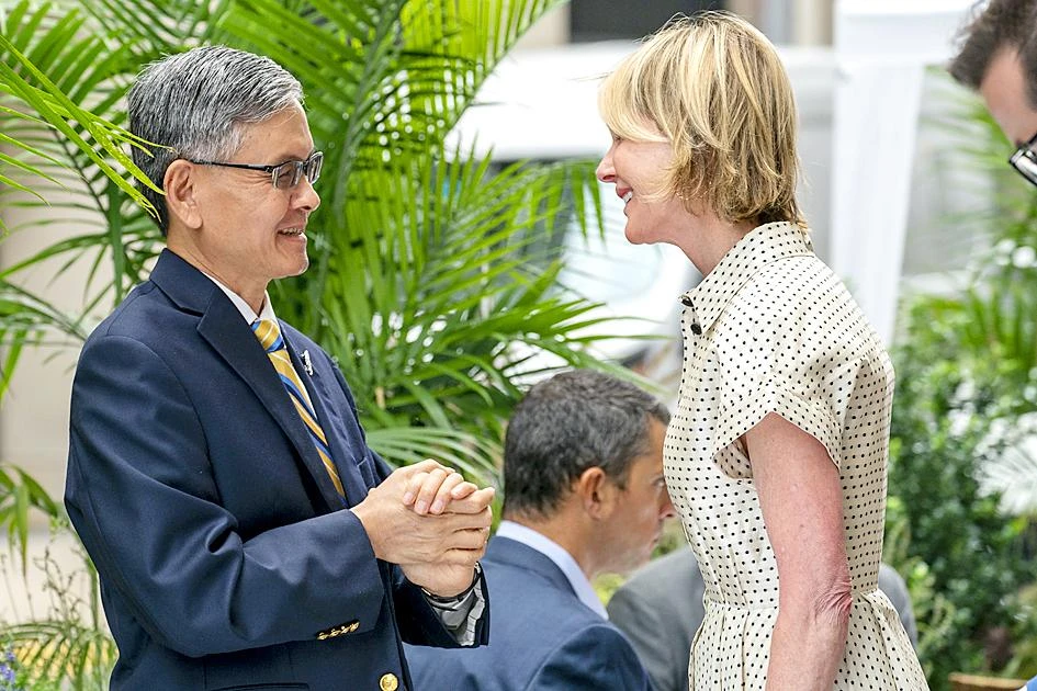 Đại sứ Mỹ Kelly Craft gặp Giám đốc Văn phòng Kinh tế và Văn hóa Đài Bắc ở New York James Lee hồi tháng 9-2020. Ảnh: AP
