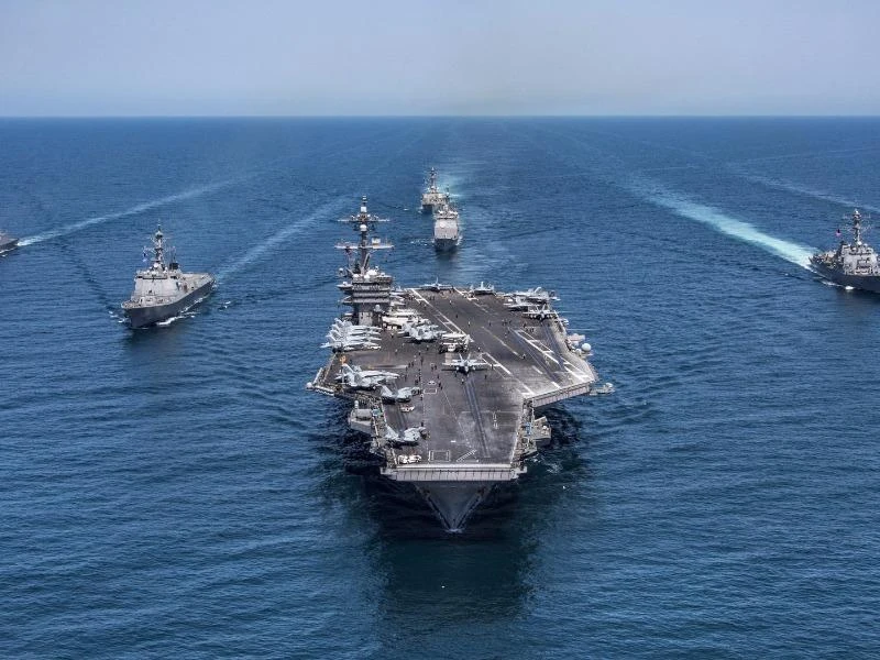 Tàu sân bay USS Carl Vinson của Hải quân Mỹ cùng các tàu chiến khác của Mỹ và Hàn Quốc tuần tra ở Tây Thái Bình Dương ngày 3-5-2017. Ảnh: REUTERS