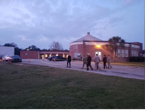 Tùy viên quốc phòng Saudi Arabia cùng các nhân viên đại sứ quán nước này đến gặp các binh sĩ huấn luyện đang bị giới hạn hoạt động tại Căn cứ Không quân Hải quân Pensacola. Ảnh: REUTERS