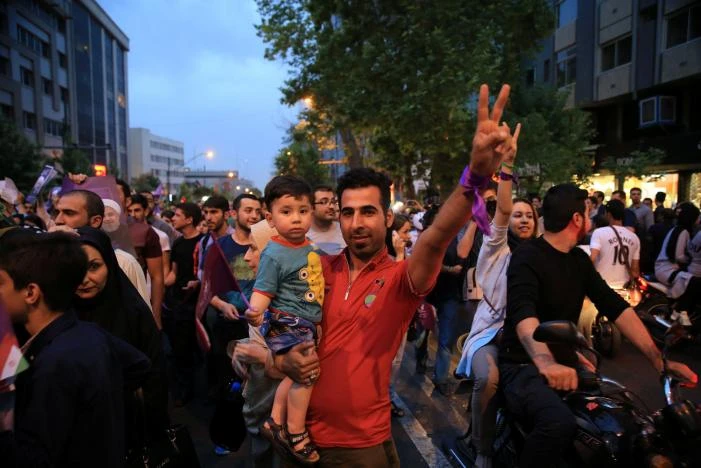 Người dân ủng hộ Tổng thống Iran Hassan Rouhani ăn mừng chiến thắng trên đường phố thủ đô Tehran, Iran vào ngày 20-5. Ảnh: REUTERS