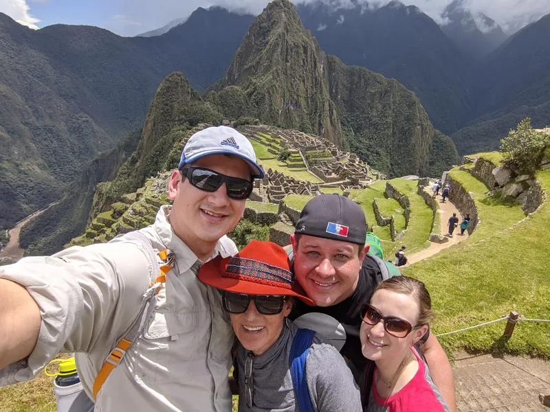 Thầy giáo Collin Reichert (trái), người Mỹ, cùng gia đình trong một lần du lịch đến Peru trước khi dịch COVID-19 xảy ra. Vợ chồng thầy giáo Reichert sang Peru công tác tuần trước và không về được vì nước này cấm bay chống dịch COVID-19. Ảnh: COLLIN REICHERT