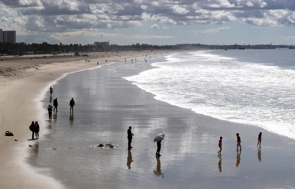 Lác đác người ra bãi biển Santa Monica, bang California (Mỹ) ngày 17-3. Ảnh: GT