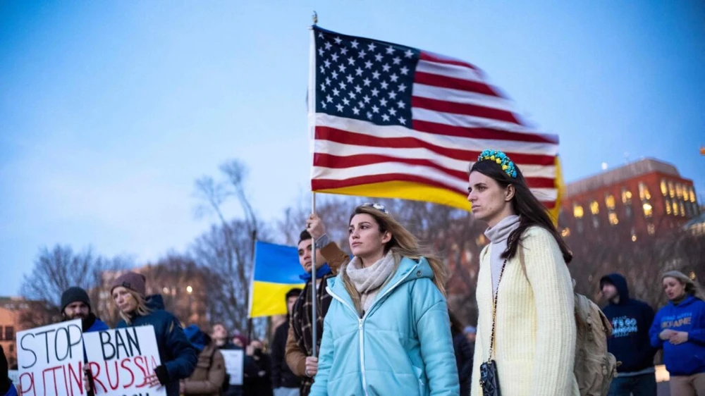 Người biểu tình phản đối việc Nga tấn công Ukraine tại Quảng trường Lafayette, đối diện Nhà Trắng, Washington,D.C. (Mỹ). Ảnh: AFP
