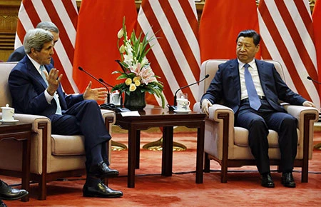 Ngoại trưởng John Kerry hội kiến Chủ tịch Tập Cận Bình ngày 10-7. Ảnh: AP