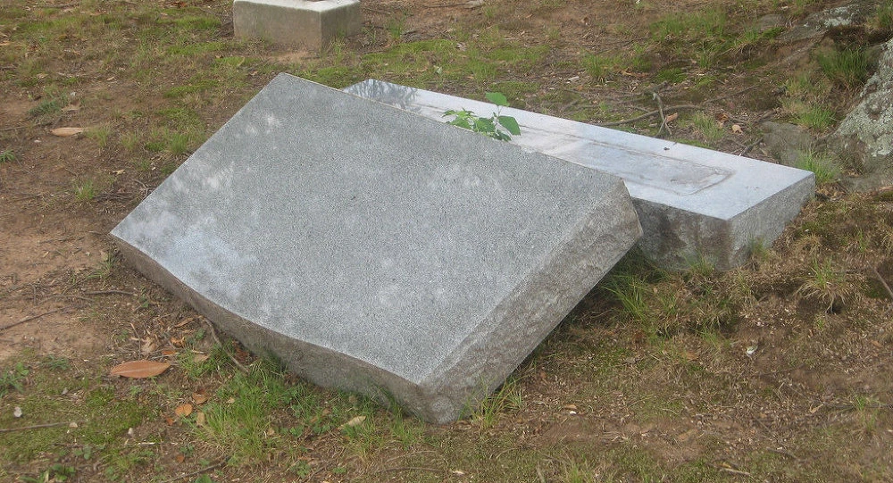 Bia mộ bị lật đổ tại nghĩa trang Adath Jeshurun, Philadelphia ( nguồn : sputniknews.com)