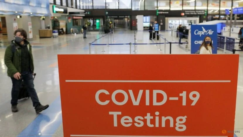 Một tấm biển báo phân định khu vực xét nghiệm COVID-19 tại Sân bay Quốc tế Logan ở Boston, bang Massachusetts, vào ngày 22-11. Ảnh: REUTERS