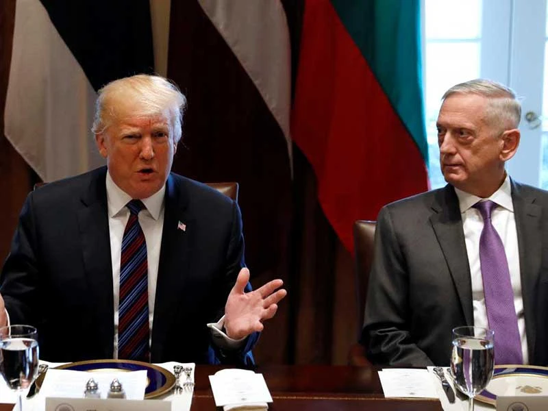 Bộ trưởng Mattis (phải) và Tổng thống Trump. Ảnh: REUTERS