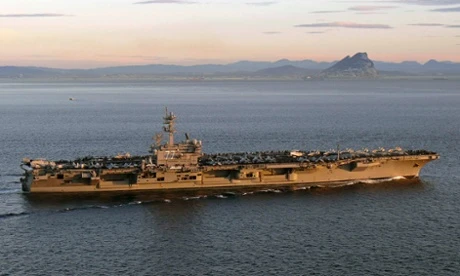 Hàng không mẫu hạm USS George HW tại vịnh Ba Tư là nơi xuất phát của các chuyến không kích của Mỹ nhắm vào các lực lượng hồi giáo cực đoan tại Trung Đông (Ảnh: Reuters)