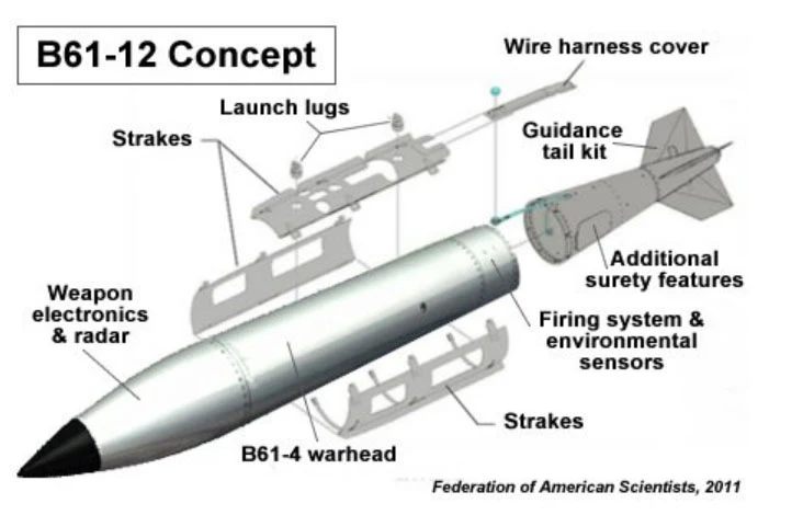B61-12 được đánh giá có sức công phá yếu vào khoảng 50KT và có thể giảm xuống 0,3KT, đồng thời tăng độ chính xác của vũ khí lên để tăng cường hiệu quả. So sánh cho thấy bô phận dẫn đường bằng quán tính có thể tăng cường khả năng của B61-12 lên tương đương một quả bom B61-11 400KT với thương vong ít hơn.