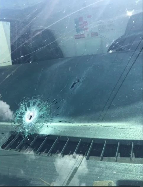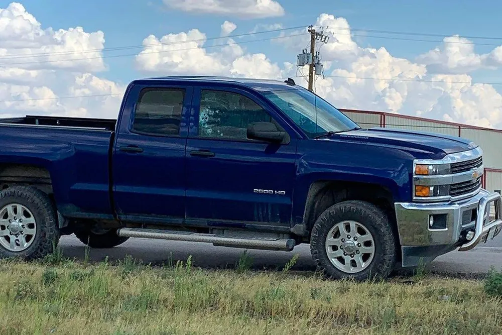 Một chiếc xe tải bị trúng đạn từ vụ xả súng điên cuồng ở bang Tezas (Mỹ) chiều 31-8. Ảnh: MYFOX