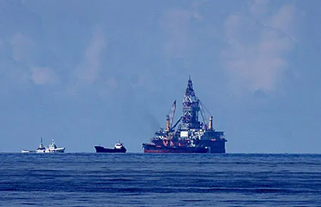 Việc TQ đặt giàn khoan và sử dụng nhiều tàu trong đó có cả tàu quân sự để bảo vệ sự xâm phạm của mình đang gây ra nhiều nguy cơ bất ổn, ảnh hưởng đến tự do hàng hải ở biển Đông. Ảnh: SB