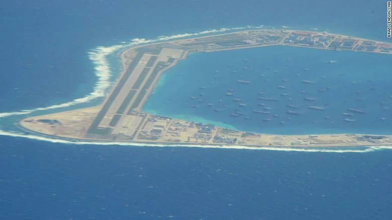 Đá Vành Khăn thuộc quần đảo Trường Sa của Việt Nam bị Trung Quốc chiếm đóng và cải tạo trái phép thành đảo nhân tạo. Ảnh do một máy bay do thám của Mỹ chụp ngày 10-8 và được CNN đưa lại.