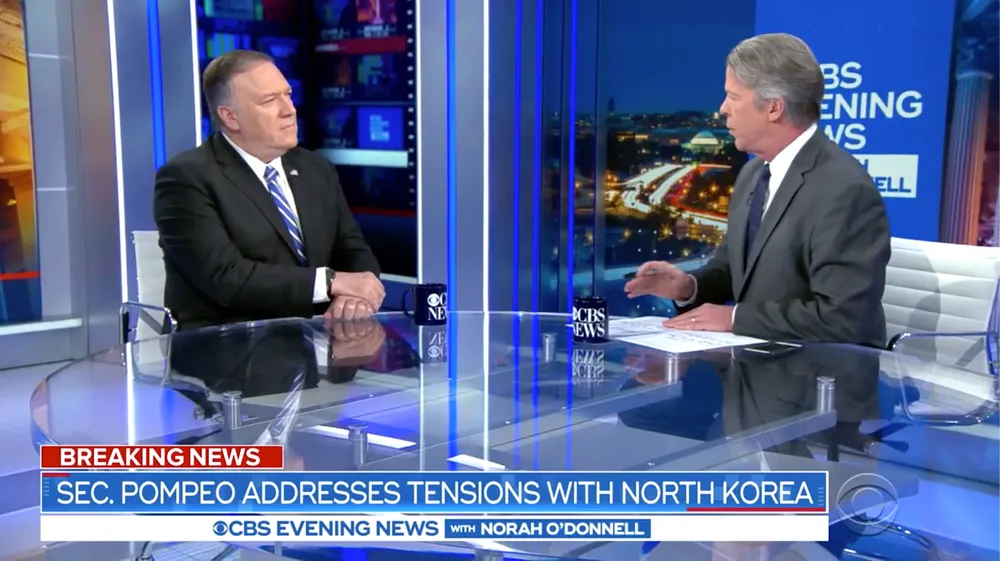 Ngoại trưởng Mỹ Mike Pompeo xuất hiện trên đài CBS hôm 1-1. Ảnh: CBS.