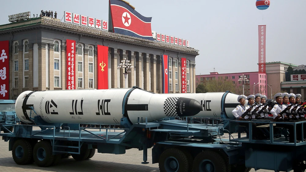 Tên lửa Triều Tiên trong đợt duyệt binh hồi tháng 4-2019. Ảnh: KCNA