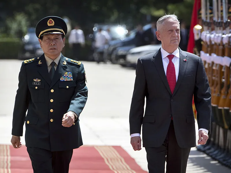 Bộ trưởng Quốc phòng Mỹ James Mattis (phải) gặp người đồng cấp Trung Quốc tại Bắc Kinh hồi tháng 7-2018. Ảnh: REUTERS