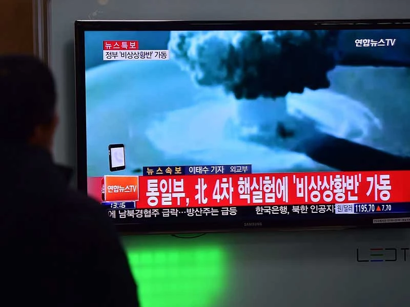 Người dân Hàn Quốc xem thông báo về vụ thử bom H đầu tiên của Triều Tiên vào năm 2016. Ảnh: AFP