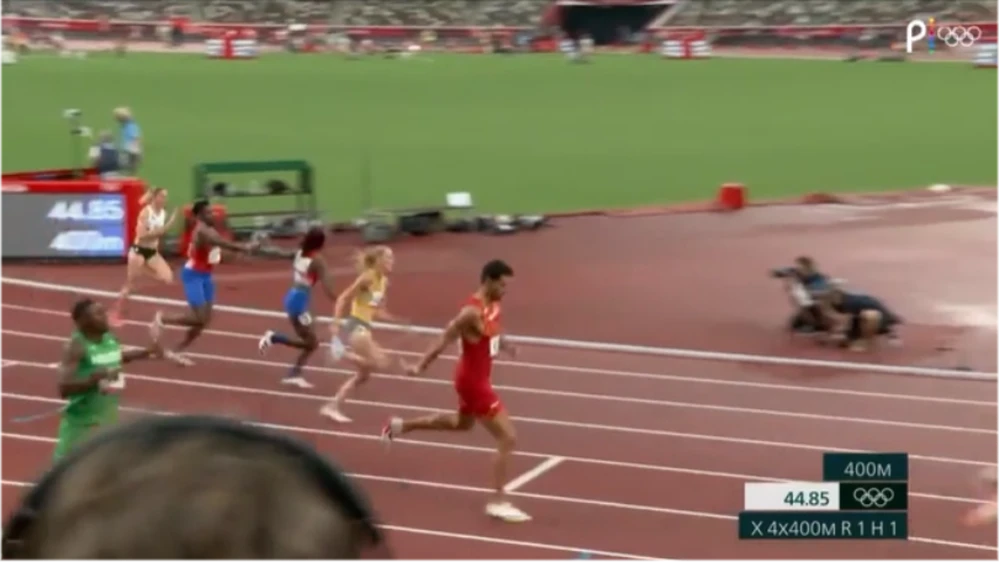 Video đội 4x400m hỗn hợp Mỹ về nhất nhưng phạm quy và bị loại