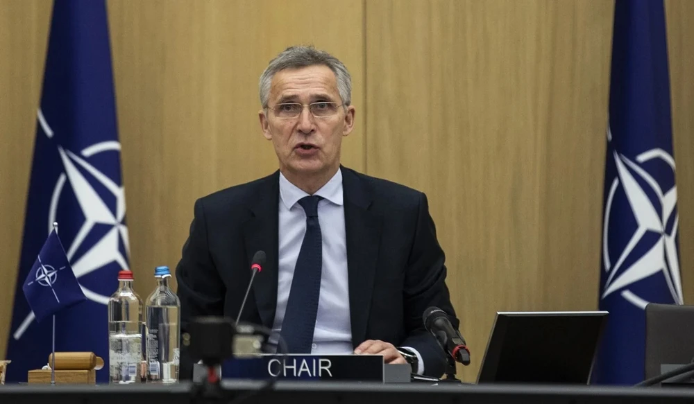 Tổng thư ký NATO Jens Stoltenberg tại một cuộc họp hôm 1-12. Ảnh: EPA-EFE