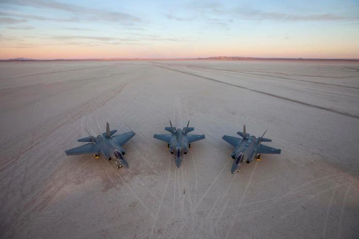 Ba biến thể của tiêm kích tàng hình F-35 ở căn cứ không quân Edwards, bang California, Mỹ. Ảnh: CNBC