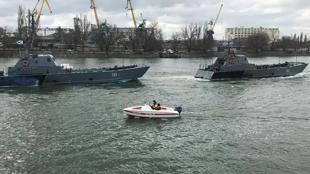 Một nhóm tàu thuộc Hạm đội Caspi (Nga) di chuyển ra Biển Đen hôm 13-4. Ảnh: AFP