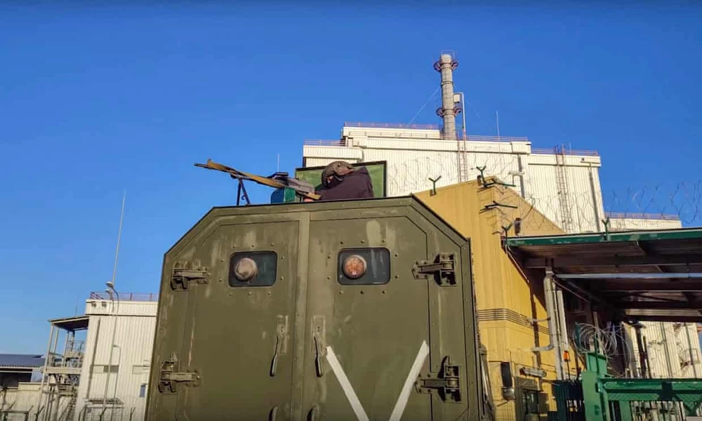 Binh sĩ Nga canh gác trước nhà máy hạt nhân Chernobyl, Ukraine. Ảnh: EPA