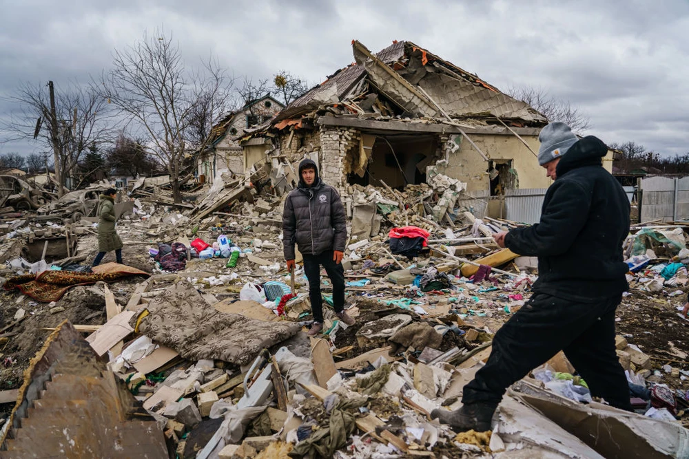 Khung cảnh hoang tàn tại Ukraine sau các đợt không kích của Nga. Ảnh: THE TIME