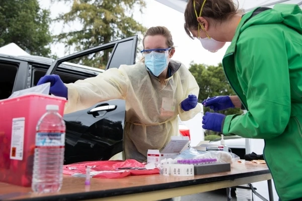 Một điểm thu thập mẫu xét nghiệm COVID-19 ở TP Mountain View thuộc quận Santa Clara, bang California (Mỹ). Ảnh: PALO ALTO