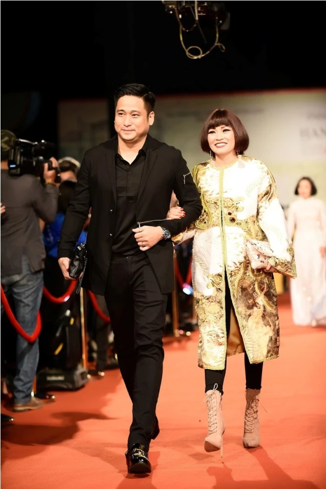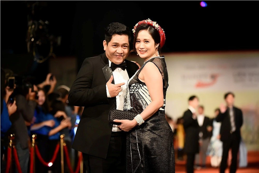 Vợ chồng đạo diễn Đức Thịnh tạo dáng trước ống kính.