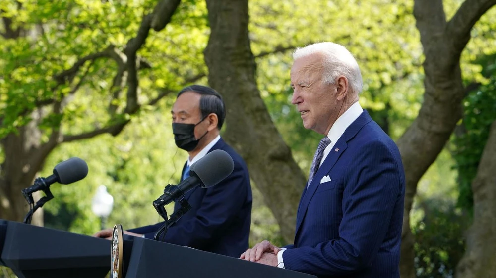 Theo tờ South China Morning Post ngày 17-4, Tổng thống Mỹ Joe Biden và Thủ tướng Nhật Yoshihide Suga tái khẳng định cam kết chống lại "sự uy hiếp" của Trung Quốc ở biển Hoa Đông và Biển Đông.