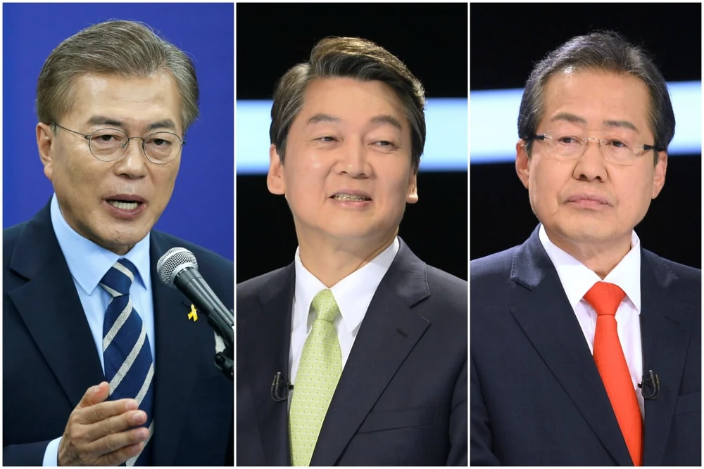 Các ứng cử viên từ trái qua: Ông Moon Jae-in, ông Ahn Cheal-soo, và ông Hoong Jooon-pyo