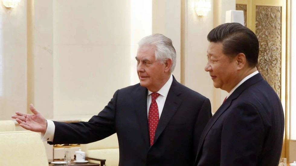 Ngoại trưởng Mỹ Rex Tillerson (trái) và Chủ tịch Trung Quốc Tập Cận Bình trong chuyến thăm Trung Quốc hôm 19-3. Ảnh: SCMP