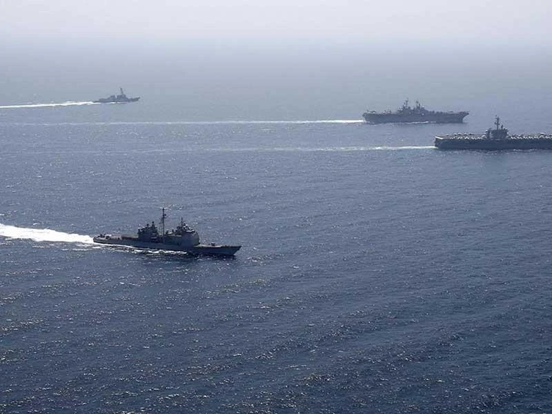 Trong lúc này, đội tàu sân bay tấn công USS Abraham Lincoln chở theo 40 máy bay ném bom chiến lược hiện đang đậu chờ bên ngoài bờ biển Oman, gần Iran. Trong khi đó tàu đổ bộ tấn công USS Kearsarge thì đậu ngoài bờ biển Các Tiểu vương quốc Ả Rập thống nhất. Các máy bay ném bom B-52 cũng đã bắt đầu các chiến dịch trên không từ căn cứ Al Udeid của Mỹ ở Qatar. Hải quân Mỹ cũng vừa tổ chức tập trận ở biển Ả Rập với sự tham gia của tàu sân bay USS Abraham Lincoln, tàu đổ bộ tấn công USS Kearsarge, phối hợp với Quân đoàn Thủy quân lục chiến của Mỹ.