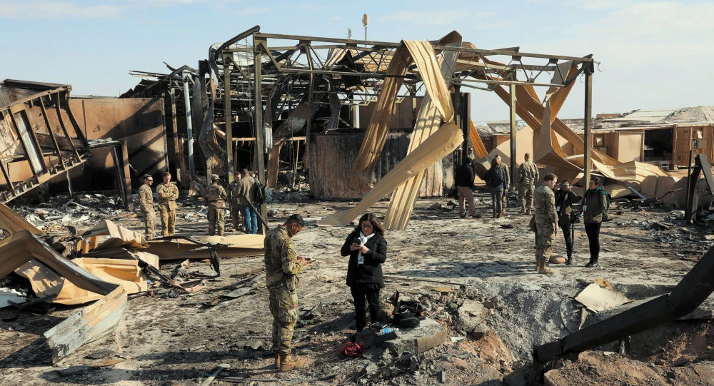 Nhóm phóng viên các hãng truyền thông tới căn cứ Ayn al-Asad của Mỹ tại Iraq sau vụ không kích của Iran. Ảnh: SPUTNIK