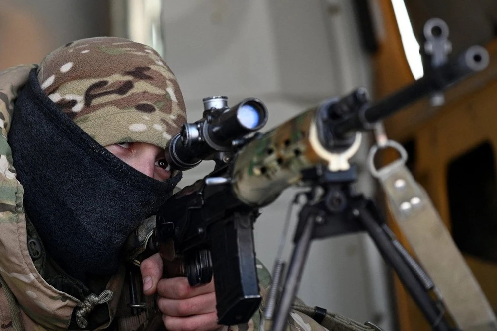 Một tay súng bắn tỉa của Nga tham gia cuộc tập trận tại dãy Kadamovsky, vùng Rostov hôm 13-1. Ảnh: REUTERS