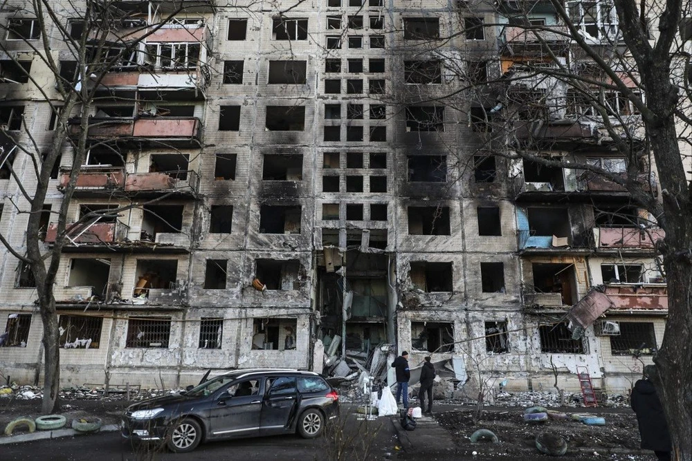 Chung cư ở Kiev (Ukraine) bị tàn phá trong chiến dịch quân sự của Nga. Ảnh: EPA