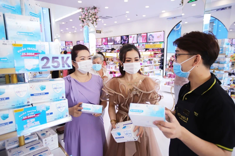 Cạnh đó, 5.000 hộp khẩu trang 4 lớp mang thương hiệu Dr. Medical Mask được AB Beauty World trao tận tay những khách hàng có hoá đơn mua sắm trên 100.000 đồng tại chi nhánh thứ 6 và trên toàn hệ thống siêu thị trong ngày 5-12.