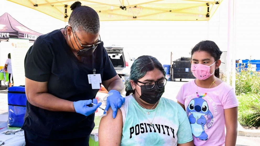 Trẻ vị thành niên (12-17 tuổi) được tiêm vaccine COVID-19 tại Los Angeles, bang California (Mỹ), ngày 16-7. Ảnh: GETTY IMAGES