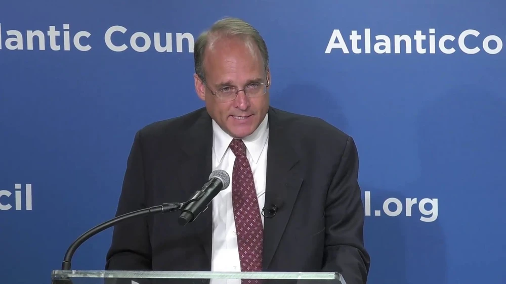 Ông Marshall Billingslea (đặc phái viên của Tổng thống Mỹ về kiểm soát vũ khí) trong một buổi phát biểu - Ảnh: ATLANTIC COUNCIL