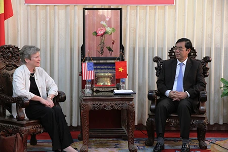 Bà Rose Gottemoeller trong buổi làm việc với lãnh đạo tỉnh Quảng Trị vào ngày 3 - 2.