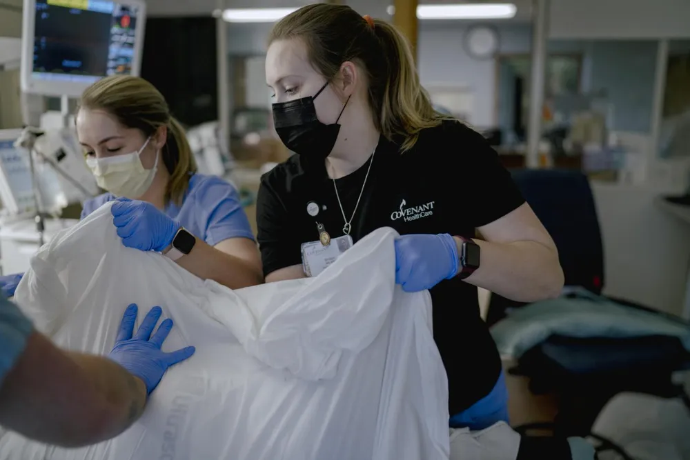 Tại một cơ sở ở TP Saginaw (bang Michigan, Mỹ), trên tầng điều trị các bệnh nhân COVID-19 nguy kịch, 13 trong số 14 giường đã không còn trống. Chiếc giường còn lại là của một bệnh nhân COVID-19 vừa qua đời.