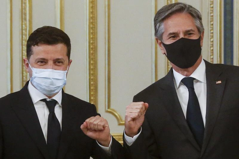 Tổng thống Ukraine Volodymyr Zelenskiy (trái) và Ngoại trưởng Mỹ Antony Blinken. Ảnh: AP