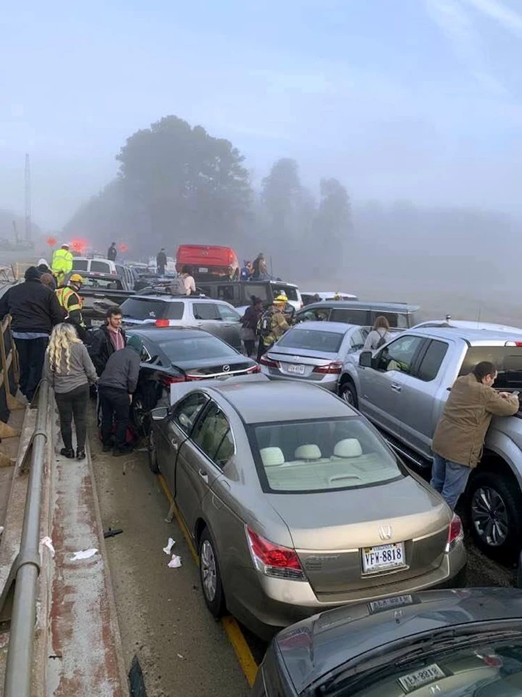 Sương mù và đường ướt vào sáng sớm là nguyên nhân vụ tai nạn khiến hơn 51 người bị thương. Ảnh: AP
